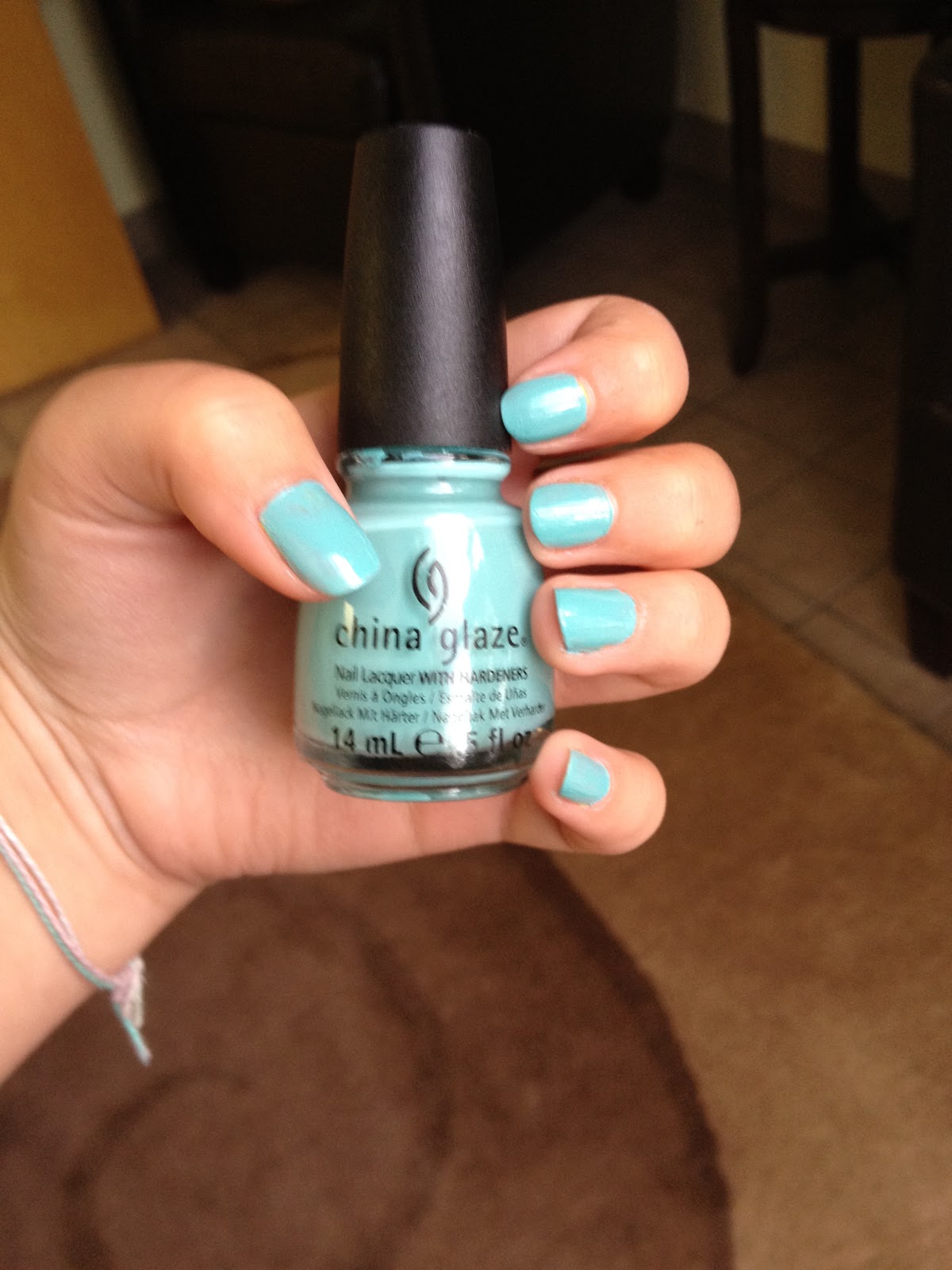 This color is called For Audrey the brand is China Glaze. I would say its a spring color or fall.I used 1coat if you think you might need 2 coats thats ok this is not one of those super BRIGHT colors its simple and minty i put in the blue column because i dont have any other mint polishes anyway if you like this color comment below on how you do! :)
